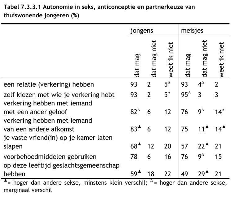 "Zowel jongens als meisjes praten in 2012 iets vaker met hun ouders over verliefdheid en relaties en over wat ze wel en niet willen doen op seksueel gebied (tabel 7.7.1)."(159)